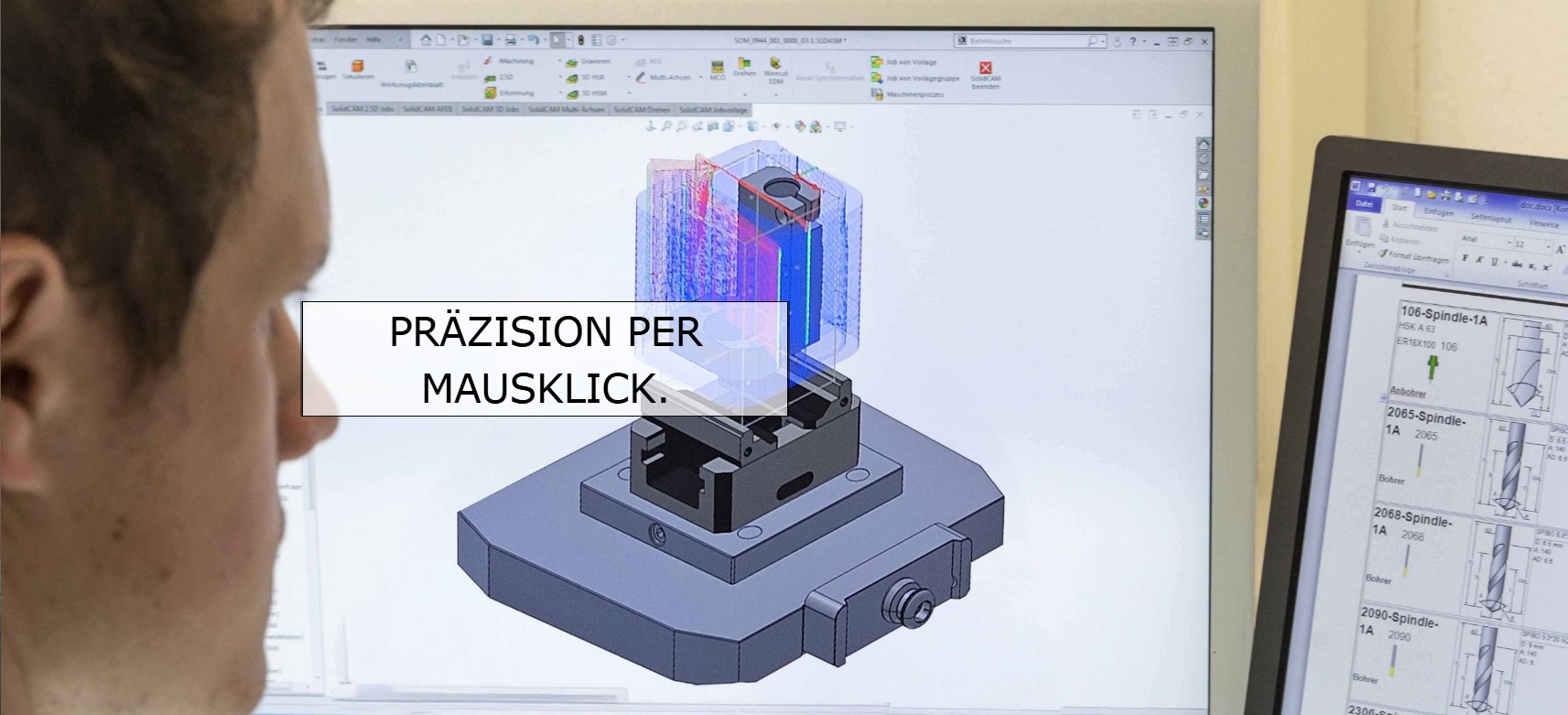 An unseren CAM-Arbeitsplätzen mit integrierter Betriebsmitteldatenbank und Werkzeugverwaltung werden die CNC-Programme schnell und sicher hergestellt. Denn nur eine schnelle Verfügbarkeit aller Fertigungsmittel wie CNC-Programm, Maschine, Werkzeuge, Spann- und Messmittel führen zum Erfolg. Durch Virtual Machining können alle NC-Programme virtuell auf eine optimale Zerspanungsstrategie überprüft werden und kürzeste Bearbeitungszeiten ermöglichen. Sie als Kunde profitieren vom Einsatz dieser modernen CAM-Arbeitsplätze, welche die optimale Voraussetzung für eine Fertigung auf unseren Bearbeitungsmaschinen ist.